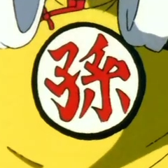 ![]() | Chữ Kanji của gia đình Goku, 孫, được phát âm là Son và có nghĩa là “hậu duệ”,Son chính là họ của Goku (Son Goku). Gohan mặc Kanji này ở mặt trướcáo choàng của mình | Gohan (hồi bé) |